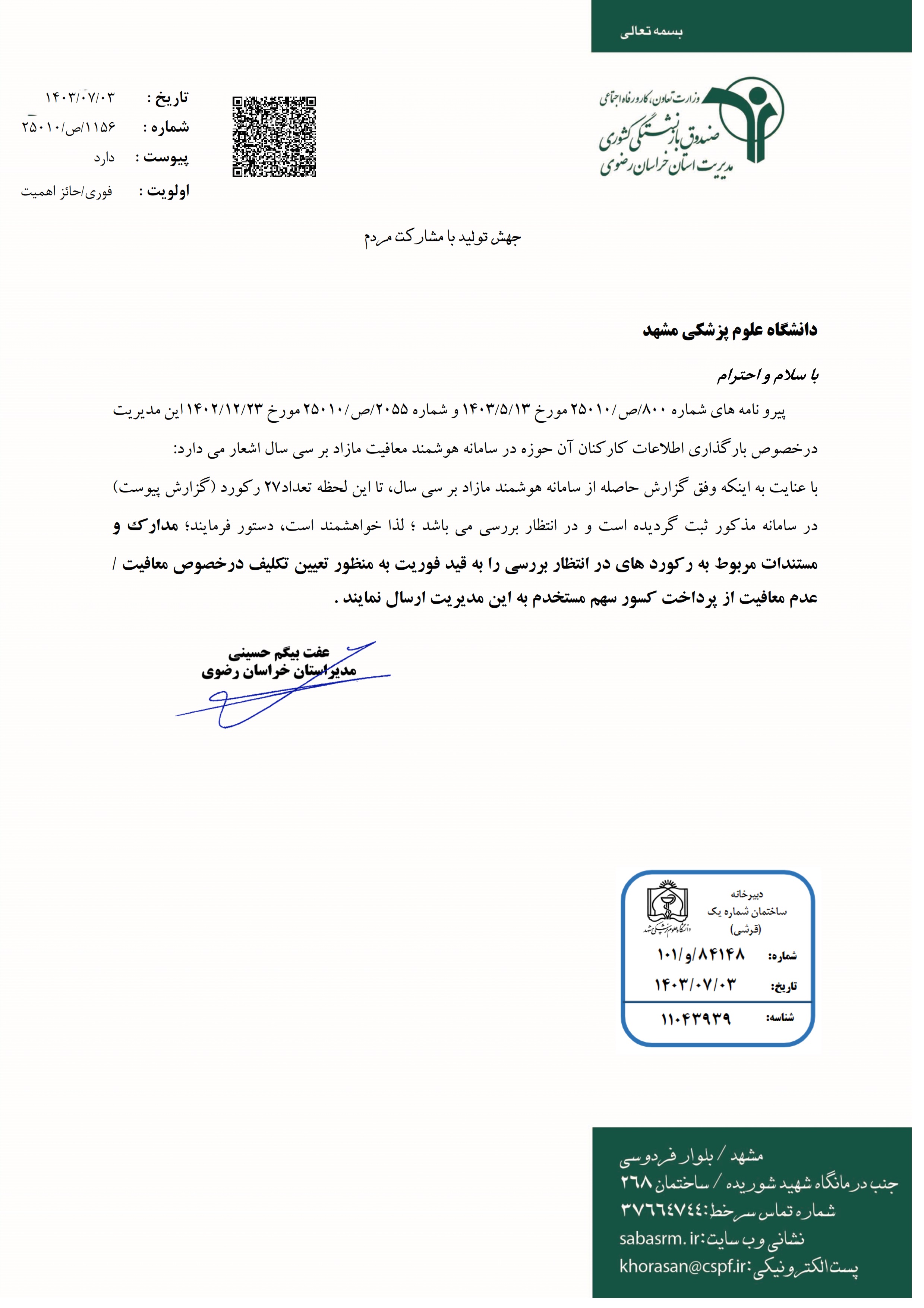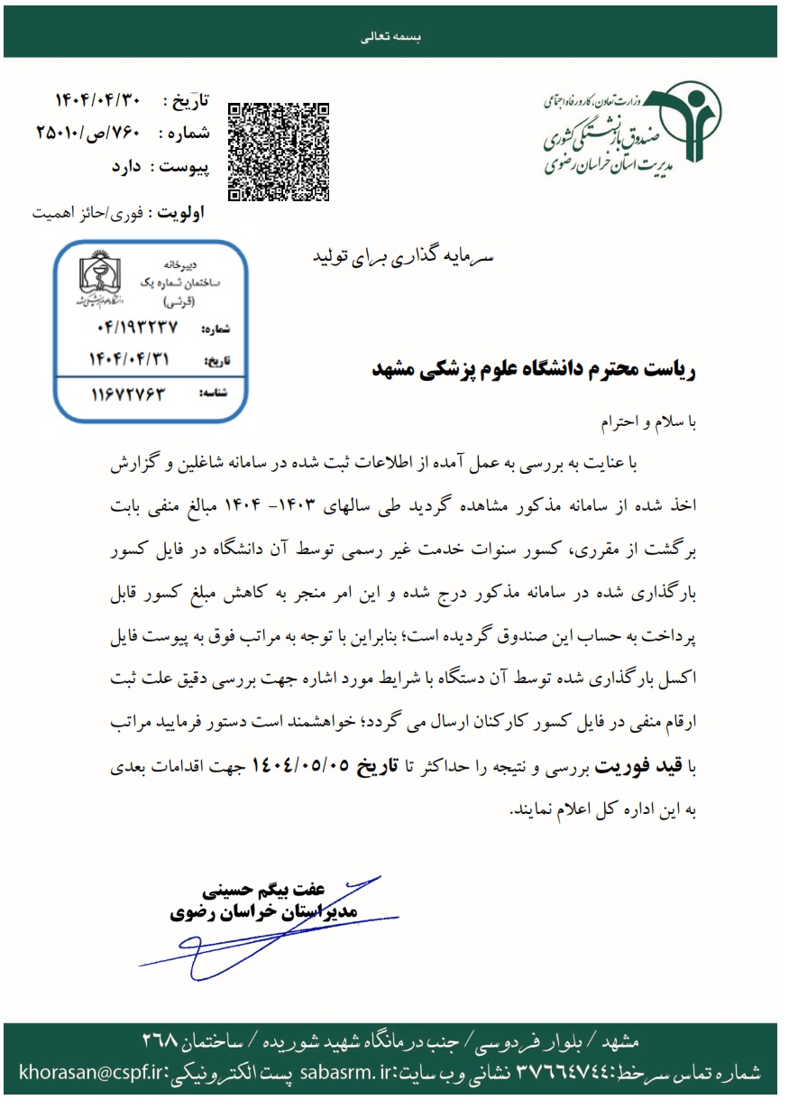 اطلاعات مربوط به قوانین و مقررات مرتبط با مدیریت امور مالی دانشگاه علــوم پزشکی مشهــد
